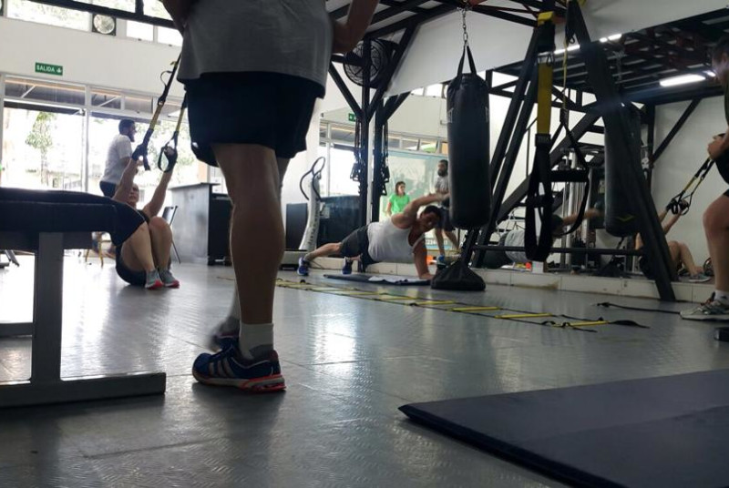Sistema de Entrenamiento Grupal, en el cual un maximo de 10 personas interactuan para realizar una rutina de ejercicios funcional.